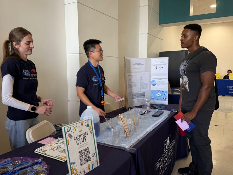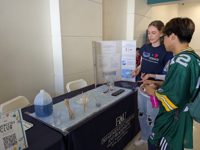 2025-11-15: Our lab had a strong presence in the Explore FAU event–Reaching out to perspective students with our chemistry demos.